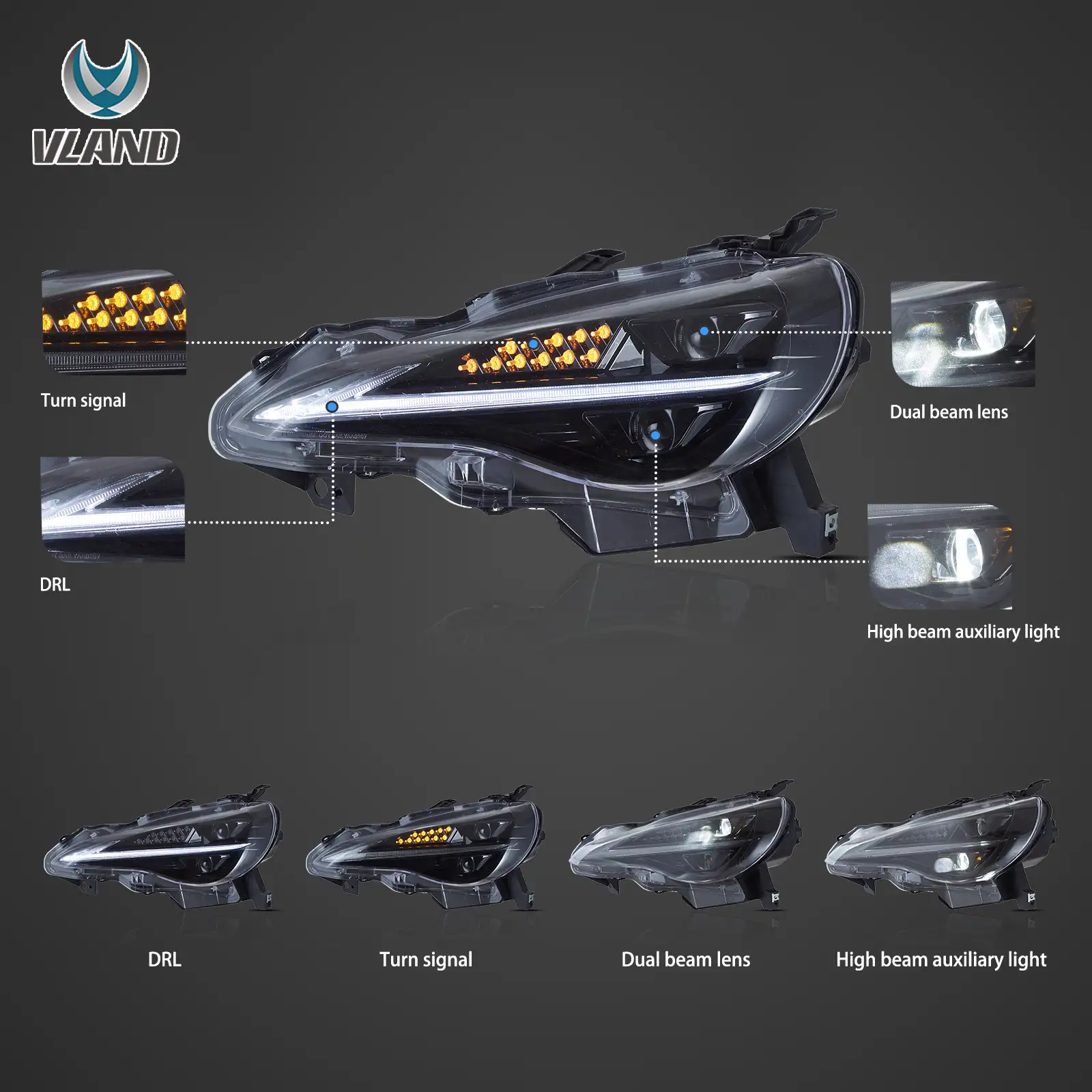 12–21 Toyota 86/GT86, Subaru Brz, Scion Frs Vland Upgrade Full LED Dual Beam Projector Headlights